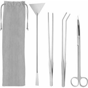 Product Description: Item includes straight tweezers, curved tweezers, curved scissors and spatula. Gets into hard-to-reach places and mows plants in the foreground. it will not harm the cross section of the plant, effectively reducing plants that damage due to false pruning. Features: ★Curved scissors Tucks into the hard-to-reach places and mows plants in the foreground. ★Substrate spatula Create smooth slopes and terraces ★Curved tweezers Grab your items securely safety during maintenance and setup ★Straight tweezers Plant your live aquatic plants with comfort and ease Features: Material: stainless steel. Colour: silver. Dimensions: -Length of straight clamp: 27 cm. -Length of curved tweeter: 26.6 cm. -Length of scissors: 24.5 cm. -Length of the patula: 32 cm. Contents: 1 straight clip. 1 curved tweeter. 1 pair of curved scissors. 1 substrate spatula. 1 storage pouch. Note: Rinse and dry with a clean cloth after each use. Store it away from children and pets.