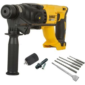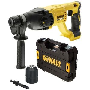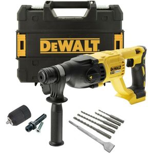 18v XR Brushless SDS+ Rotary Hammer Drill ideal for drilling anchor and fixing holes into concrete, brick & masonry. Stopping the rotation mode for light chiseling in drywall; tiles and render and Impact stop only allows drilling executed in wood and metal Max 1550rpm no load speed, max 5550bpm producing 2.6J impact energy, drilling up to 13mm into steel, 30mm into wood & 26mm into concrete making it the ideal machine for multiple applications. Compact and lightweight 2.3kg design makes it ideal for use on site, whilst the shock-absorbent, ergonomic soft grip handle protects the battery housing for extra durability, providing maximum comfort reducing user fatigue and providing greater tool control. Key Features Ideal for drilling anchor and fixing holes For concrete, brick & masonry 2.6J impact energy Compact and lightweight Ergonomic soft grip handle Includes: 1 x Tstak CaseBare Tool - No batteries or charger supplied17 Piece SDS Set + Chisel