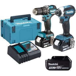 Makita 18v brushless twin kit, includes: DHP487Z Combi Drill DTD153Z Impact Driver 3 x 5ah Batteries Charger Case DHP487Z: Electric brake Forward / reverse rotation Single sleeve keyless chuck allows for easy bit installation/removal by one hand. 2 mechanical gears. Variable speed control by trigger Best possible ergonomic handle for drill-driver applications. Brushless motor LED job light Belt clip Compact overall length of 164mm DTD153Z: Brushless motor One touch sliding chuck for easy bit installation and removal. LED job light Ergonomic soft grip Electric brake Variable speed control by trigger Forward/reverse rotation Compact overall length