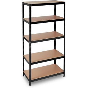 The green heavy-duty shelving unit 2-piece set offers plenty of space to keep things tidy. As a basement or workshop shelf, in the utility room, garage or garden shed, it provides indispensable storage space for heavy items and more. Store tyres, machines, tools or food supplies in a space-saving manner. Assemble the sturdy steel storage shelving unit according to your needs – the height of the 5 shelves is adjustable. If necessary, you can divide the shelving unit and use the 2 shelves individually. Tip: The practical plug-in system does not require any screws, so assembly is quick and easy. You will need a rubber mallet. Assemble the shelf wearing gloves. You may need a screwdriver to bend the prongs slightly. Heavy-duty shelving unit, set of 2, in detail - Size H x W x D: approx. 180 x 90 x 40 cm - Total load capacity: approx. 875 kg - Load capacity per level: approx. 175 kg - Size per compartment W x D: approx. 89.5 x 39.5 cm - Thickness per MDF panel: approx. 4 mm - Weight: