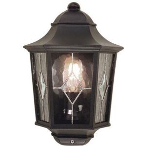 NORFOLK NR2-BLK.ᅠ A traditional exterior wall lantern, finished in black. Featuring hand-leaded glass panels and manufactured from aluminium, this product is backed by a 5 year anti-corrosion guarantee. FEATURES * Wall light * 1 bulb - not included * Rated IP44 - suitable for outdoor use * Aluminum * 5 year anti-corrosion guarantee * Hand-leaded glass panels * Black finish SIZE * Height: 408mm * Width: 184mm * Projection: 215mm BULBS * Take 1x 100w (max) ES/E27 GLS lamp - NOT INCLUDED ORDER CODE * NR2-BLK