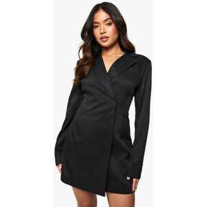 Structured woven fabric with textured finish for added dimension Flattering wrap design with notch lapel for a sophisticated silhouette Oversize fit creates a contemporary, fashion-forward look Long sleeves with subtle shoulder structure for a tailored appearance Petite sizing ensures perfect proportions for smaller frames Make a striking impression with this structured wrap blazer dress, perfect for commanding attention on your next night out. The contemporary oversize fit combined with the classic notch lapel creates a chic juxtaposition that's both powerful and feminine. Style with statement earrings and strappy heels as shown for a look that transitions effortlessly from dinner to dancing. For cooler evenings, layer with sheer tights and add a mini shoulder bag to store your essentials. The versatile design works brilliantly for drinks with the girls or that special date night when you want to showcase your fashion credentials. This Boohoo piece delivers the perfect balance of current trends and timeless appeal - a wardrobe hero that will see you through countless social occasions with confidence and style.