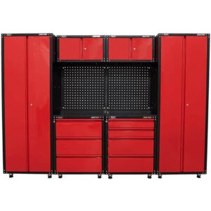 Ball-bearing drawer slides throughout. Base cabinets supplied with a worktop as standard. Floor cabinets feature adjustable shelves. Each unit is supplied with a lock and two keys. Supplied flat-packed and will require some simple assembly. This item is heavy. Extra assistance must be provided at the delivery point to help its safe delivery. Features & Benefits: • Ball-bearing drawer slides throughout. • Base cabinets supplied with a worktop as standard. • Floor cabinets feature adjustable shelves. • Each unit is supplied with a lock and two keys. • Supplied flat-packed and will require some simple assembly. Package includes: • Model No. - Description • APMS83 - 665mm Modular 2 Door Full Height Cabinet (x2) • APMS85 - 665mm Modular 2 Door Wall Cabinet (x2) • APMS82 - 665mm Modular 3 Drawer Cabinet with Worktop • APMS84 - 665mm Modular 4 Drawer Cabinet with Worktop • APMS80BP - 665mm Modular Back Panel (x2) • This item is heavy. Extra assistance must be provided at the delivery point to help its safe delivery • 2 Year guarantee*. • Model No. APMS80COMBO2 Specifications: Model No APMS80COMBO2 Brand: American Pro