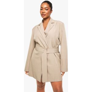 Boohoo Womens Plus Pinstripe Belted Blazer Dress - Taupe - Size 18 Uk