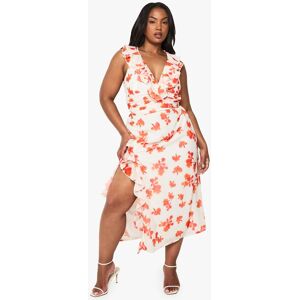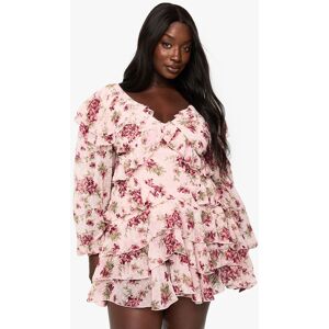 Romantic floral chiffon maxi dress with feminine ruffle detailing Flattering square neckline with delicate cap sleeves Tiered skirt design creates elegant movement and dimension Midi-to-maxi length perfect for special occasions Inclusive plus size fit designed to complement your curves Make a statement at your next special event with this enchanting floral ruffle maxi dress from Boohoo. The lightweight chiffon fabric creates a dreamy silhouette that flows beautifully with every step, whilst the tiered design adds captivating texture and movement. Style with strappy heels and gold-toned jewellery as shown for a wedding guest look that strikes the perfect balance between romantic and refined. For garden parties or race day events, add a structured clutch and fascinator to complete your ensemble. The versatile design transitions effortlessly from daytime celebrations to evening receptions-simply switch your accessories to match the occasion. This dress combines timeless femininity with contemporary styling, ensuring you'll stand out for all the right reasons at any formal gathering.
