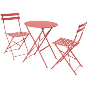 Product benefits : Foldable table and chairs Robust, lightweight steel Curved blades for greater comfort No assembly required This Emilia bistro set comprises a round table and two folding chairs. The classic design is reminiscent of French bistro terraces, with original colours to match. Sturdy, lightweight and easy to store, this folding garden furniture set in cataphoretically painted steel with a matt finish will suit any space. The chairs have curved slats, making them more comfortable. To ensure impeccable quality, each product is duly inspected according to precise specifications. The set is delivered pre-assembled, brand new, in its original packaging. All you have to do is unfold it and enjoy! Dimensions : 1x Table: Ø60xH71cm Folded table: W60xD4xH93.5cm 2x Chairs: W49.5xD41xH80.5cm Folded chair: W41xD8.5xH94cm