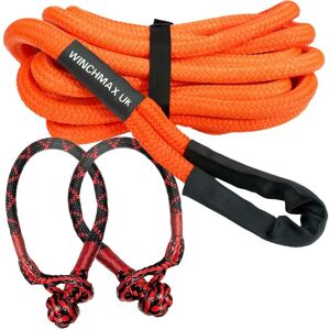 9m x 25mm Kinetic Recovery Rope. WINCHMAX kinetic recovery ropes have been developed to provide a safer smoother method for recovering stranded vehicles out of mud, snow, sand, and other hostile terrain. Unlike traditional flat straps wire ropes or chains, kinetic recovery ropes will stretch and in doing so store the kinetic energy from the moving recovery vehicle to create a powerful pulling force far in excess of what the recovery vehicle could apply using a fixed tow rope and traction alone. WINCHMAX Kinetic recovery ropes have two main features that make them superior to other recovery methods: their elasticity and their strength. WINCHMAX kinetic ropes have a superior elongation factor allowing them to stretch up to 30% of their original length, with a minimum breaking force (MBF) of 14,500kg, which means they will easily handle 4×4 vehicles and trucks up to 4500kg. The benefits of using a WINCHMAX kinetic recovery rope are numerous. They prevent snatch loading which can cause