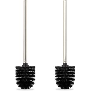 Handy set of 4 WC brushes for clean toilet and bathroom. For hygienic reasons, the brush head needs to be changed regularly. This set of 4 toilet brushes is simple and practical: exactly what you need to keep your bathroom clean. The brush is equipped with sturdy bristles for an effective cleaning. Its head is removable so it can be easily changed - no need to buy a new one. Thanks to its uncomplicated form, the brush can fit any holder. Toilet Brushes Set of 4 - Size H x D approx. 36 x 8 cm - Brush head H x D: approx. 10 x 8 cm - Head thread inner size: approx. 1.2 cm - Handle H x D: approx. 25.5 x 1.5 cm - Weight: approx. 90 g - Material: Plastic, metal - Colour: Black Replacement Toilet Brush - Practical set of 4 pieces - ideal for personal and guest bathroom - Classic WC brush with silver grip and black bristles - Removable heads for a hygienic cleaning of your toilet - Simple, classic look of the brush matches any bathroom design