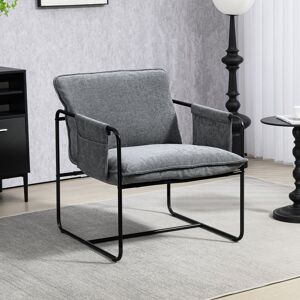Simple style meets soft comfort with this accent chair. The powder coated steel frame ensures a tough, supportive core, fitted with a padded seat and back cushion for comfort; the soft chenille covers are removable and washable for hygiene. Complete with storage pockets on each arm for keeping magazines, remotes and similar within easy reach.- Simple design: chair is versatile and looks great in plenty of interior styles; - Padded seat and back cushion for comfort, with soft, washable chenille covers; - Side pockets hang from arm: easy to access; - Powder coated steel frame for a strong core, with protective foot pads; - Maximum load 120kg, easy to assemble.- Colour: Grey; - Material: Chenille (100% Polyester), PP Cotton, Steel; - Overall Dimension: 68W x 76D x 81Hcm; - Seat Size: 65W x 57D x 47Hcm; - Seat Thickness: 10cm; - Back Size: 68W x 40Hcm; - Back Thickness: 10cm; - Armrest Height to Seat: 20cm; - Weight Capacity: 120kg; - Item Label: 83B-263V70GY; 17 Stories