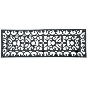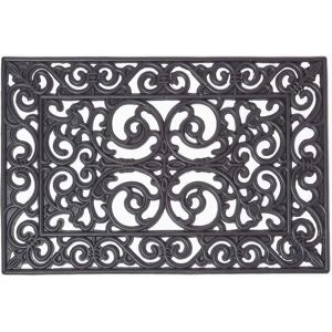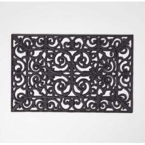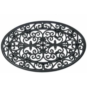 Part of Homescapes collection of doormats and outdoor accessories, this oval rubber cast iron style doormat measures 70cm wide and at its deepest 44cm, it is suitable for outdoor use. Place outside of your front or back door, where guests and those re-entering your home can wipe muddy, dirty or grassy feet clean. A timeless style doormat suitable for flat ground to ensure stability, use on concrete, tiles, slabs or wood. Suitable for all outdoor weathers, to clean simply run under water. Homescapes Black Wrought Iron Effect Parisian Oval Rubber Doormat Size: 44cm x 70cm