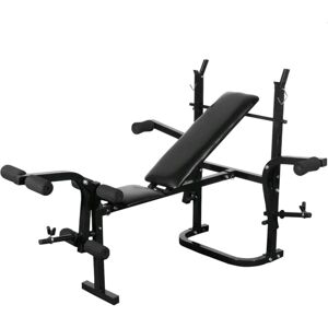 This weight bench provides an ideal training solution for beginners and advanced users alike, for individual muscle workouts or combination exercises for entire muscle groups. The bench press can tone arm and chest muscles. The curl and butterfly station strengthen the shoulders and arms, while the leg-curl works the lower and upper thighs. The wide range of workout combinations and exercises allows for an effective, total body workout, while the adjustable settings enable the workout to be adapted to suit your specific needs. The sturdy steel construction of the bench ensures your safety during the exercises. Colour: Black Material: Steel Dimensions (unfolded): 103 x 123 x 147 cm (L x W x H) Dimensions (folded): 163 x 80 x 124 cm (L x W x H) Backrest height adjustable Butterfly length adjustable Tube diameter for weight plates: 25 mm Foldable, space saving With safety clamps to securing the weights (weights not included) Fabric: Polyurethane: 100%