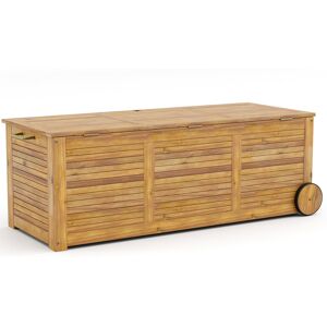 Looking for a durable and versatile outdoor storage solution? Our Acacia Wood Storage Box is perfect for organizing cushions, blankets, and more. Crafted from solid acacia wood, it offers 180L of storage space. With a unique slat design for airflow and a water-resistant inner bag, your items stay protected. It's easy to access with flexible hinges and a convenient handle, plus it has smooth wheels for effortless movement. Assembly is quick, and cleaning is a breeze. Upgrade your outdoor space today with our Acacia Wood Storage Box, available with free shipping! Alpen Home