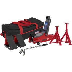 Sealey Low Profile Short Chassis Trolley Jack 2 Tonne - Red Features: Heavy-duty chassis with strengthening flanges along the top edge for extra torsional rigidity under load. Profiled lifting arm allows low clearance height of just 85mm making this unit suitable for sports and custom cars. Fitted with heavy-duty one-piece hydraulic unit with pump-through action preventing handle locking at maximum ram extension. White saddle aids positioning under vehicle and safety valve prevents overloading. Type A rubber jack pad included. Technical Details: • Min./Max. Saddle Height: 85/385mm, allowing low entry. • Chassis Length: 563mm. • Heavy-duty chassis with strengthening flanges along the top edge for extra torsional rigidity under load. • Profiled lifting arm allows low clearance height of just 85mm making this unit suitable for sports and custom cars. • Fitted with heavy-duty one-piece hydraulic unit with pump-through action preventing handle locking at maximum ram extension. • White