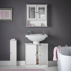 Turn your bathroom into a high-end spa with our luxurious Gatsby 3-Piece set. With its clean white finish and silver accents, the Gatsby adds a touch of elegance to the room making it the ideal foundation to your new luxury bathroom. With this 3-piece set you will have everything you need to set up your dream washroom and, with its modern yet timeless design, this collection will look stylish in any restroom. This set is made from durable and easy-to-clean materials creating a crisp, clean look that will stand the test of time. Not only can the toilet paper roll holder store up to five rolls, but it also doubles as a dispenser. We have designed the under-sink cabinet to fit around almost any basin pedestal and allow for easy access, while the wall mounted cabinet features two mirrors and can be mounted at any height.