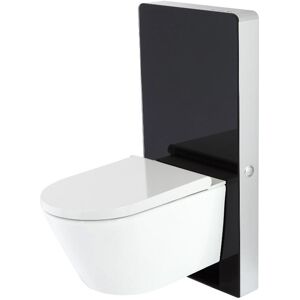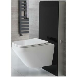 Boasting contrasting black and white finishes to add a modern look to your bathroom the floorstanding Milano Arca WC unit and wall hung rimless toilet will create a stylish effect. The WC unit features black tempered glass panels and an aluminium frame that will hide the unsightly pipework from view to give a neat and minimalist installation and includes a water-saving dual flush cistern and a hands-free flush sensor. Complementing the contemporary aesthetic is the premium quality ceramic toilet which has a rimless design to aid cleaning and improve hygiene by preventing germs from building up under an internal rim. A matching quick release soft close seat is included that will minimise noise and reduce wear and tear on the pan. - Black tempered glass panels and aluminium frame construction - Modern floorstanding design to create a contemporary look - Ceramic wall hung rimless toilet with soft close seat - Rimless design for easier cleaning and improved hygiene - Dual flush cistern to