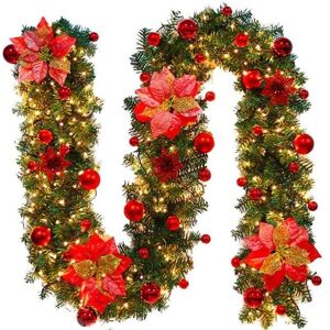 * Christmas Decoration: Traditional Christmas wreath, decorated with high-quality plastic balls and high-quality flowers, undoubtedly creates a beautiful landscape. The high-quality natural stems feel high-quality and comfortable, with no odor or resistance. It is very safe for children and adults. * Upgraded LED Lighting: 40 LED bulbs, warm LED light brings cheerful Christmas light into your home. Therefore, you can place it at night to make it more attractive and beautiful. (Except 3 AA batteries) * High-quality Materials: UV-resistant and non-toxic PVC materials. This wreath contains high-quality plastic balls and traditional flowers, as well as a warm LED light, bringing festive glow to your home and complementing any Christmas theme. Christmas Spirit: The traditional Christmas wreath, decorated with high-quality traditional plastic balls and flowers, will undoubtedly create a beautiful landscape. Ideal above the fireplace, on the stairs, by the window, around the door... This