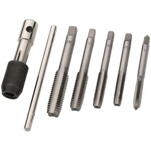 The BlueSpot Tools Tap Set can be used to cut threads into a wide range of materials. Manufactured from carbon steel for increased strength and durability. The set includes a T-shape tap holder for easy use. Sizes: M12 x 1.75, M10 x 1.5, M8 x 1.25, M7 x 1, M6 x 1