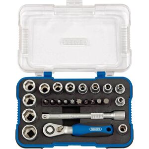 Description générale This is a high-quality 1/4" drive ratchet designed for professional and DIY use. It features a compact micro head and a reversible mechanism, making it suitable for tight spaces and versatile applications. The ratchet is built with durability and precision in mind, ensuring reliable performance. Spécifications techniques Drive size: 1/4 inch Length: approximately 130 mm Number of teeth: 60 Material: Chrome vanadium steel for the head and shaft Finish: Polished Reversible ratchet with quick release button Compatibilité et accessoires Compatible with 1/4" drive sockets and accessories Designed to work with standard 1/4" drive tools Installation Attach the appropriate socket to the ratchet's drive end Ensure the quick release button is engaged when changing sockets Utilisation Use the ratchet to tighten or loosen fasteners in confined spaces Switch the direction using the reversible mechanism as needed Autres informations Manufactured and tested according to DIN3122