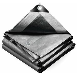 ADVANTAGES Weather-resistant Sturdy and durable High-quality 180 g/m² polyethylene material Multi-purpose DESCRIPTION SPECIFICATIONS: • Material : PE (woven fabric polyethylene) • Fabric Weight : 180g/m² • Color : Gris Noir • Available sizes : 1.5x6m ; 2x3m ; 3x4m ; 3x5m ; 4x6m ; 4x8m ; 6x8m • Rope included This 180 g/m² protective tarpaulin provides ideal protection against UV rays and moisture. It protects your belongings from the elements and sun damage, and is perfect for protecting your outdoor equipment in all seasons. QUALITY MATERIAL: Our protective tarpaulin is made of high quality polyethylene, with a thick weight of 180g/m2 and a woven structure making it durable and sturdy. SAFE AND ROBUST: In addition to high quality material, our tarpaulin is also reinforced at edges with hems reinforced with PP ropes on the inside. The anti-rust aluminum eyelets located every 100 cm on the edges and four corners reinforced with black rubber provide you with real long-lasting protection