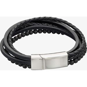 The Fred Bennett Reborn Black Leather Bracelet B5409 has been created from recycled leather. This bracelet features a black woven design with black & gold IP sections & is completed with a stainless-steel two-colour fastening. This bracelet measures 22cm in length. Ideal as a stand-alone piece or perfect for layering & combining with other Fred Bennett bracelets to create your own unique look.