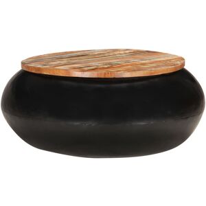This unique coffee table showcases a grand design, enhancing the existing decor in your living space. This couch table is made of solid reclaimed wood and iron. Reclaimed wood is sourced from joists, floors and support beams from old demolished buildings. So, it consists of different types of wood like pine, teak, oak, mango wood, acacia, etc. This also means the reclaimed wood retains the characteristics of these types of wood. Reclaimed wood is already aged, weathered and dried, so it doesn't shrink or bend. Additionally, the iron base adds to its sturdiness and stableness. The solid tabletop provides a stable and secure surface for your various essentials. Important note: The colour and wood grains may vary from piece to piece, making each centre table unique. Norden Home Table Base Colour: Black