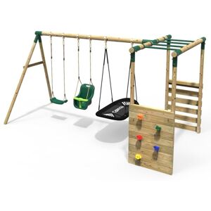 Our gorgeous Rebo wooden swing sets are the perfect addition to your garden and with the added deck and slide these swings sets are going to provide hours of fun for children of all ages. Constructed of pressure treated timber they are built to last. Over engineered 90mm top beam ensures maximum strength combine with 70mm legs ensures your children stay safe at all times. The added deck is designed to fit to the side of the swing set and will add an extra dimension to the fun thanks to the 6ft injection moulded slide. For stability play equipment must be anchors, various options available depending on the ground type, searching Rebo anchors on the store will show you the options Rebo Wooden Triple Swing Set with Glider & Slide - Neptune Pink