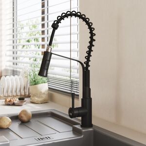 Description Update your kitchen instantly with the Livingandhome pull down faucet. The sprayer has 2 kinds of functions that allow you easily switch between. The aerated mode offers splash-free spraying while the powerful one allows you to clean the stubborn residue in your sink. Thanks to the pull down design, every corner of the sink can be reached. Crafted from top-grade stainless steel, the faucet is super heavy-duty, resistant to water, corrosion and tarnishing, perfect for high-traffic kitchens. Features *Easy-to-use single lever with forward and backward rotation *Sprayer with 2 functions for enhanced flexibility *High-arc spout makes room for big items Specifications Faucet Height: 50cm Sprayer Reach: 22cm Material: 304 Stainless Steel Finish: Black Swivel Spout: Yes Spray Type: Pull Down Pre-rinse Spout: Yes Installation Type: Single Hole Handle Type: Lever Number of Handle: 1 Package Included 1 x Kitchen Faucet 2 x Water Hoses 1 x User Manual