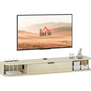 Tired of a cramped living room with tangled wires and clutter? That visual chaos can make it hard to relax and enjoy your space. The HOMCOM floating TV unit transforms your entertainment area. It lifts your setup off the ground, creating an open feel while neatly concealing cables. A discreet drawer hides controllers and open shelves keep devices ready, bringing a sense of calm and order to your home. HOMCOM 120 cm Floating TV Unit with Flip Drawer & Shelves, Natural