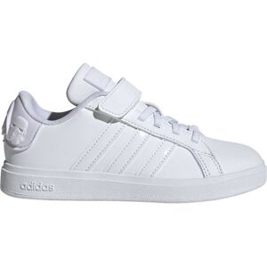 For the littlest rebels, these infants´ shoes from adidas awaken the Force.Featuring Star Wars™ inspired graphics on the heel patch, these hook-and-loop sneakers have a soft feel to cushion every one of their first steps.A one-piece UVA unitsole and a synthetic leather upper elevate durability, because you know they are going to need it.This product features at least 20% recycled materials.By reusing materials that have already been created, we help to reduce waste and our reliance on finite resources and reduce the footprint of the products we make.FEATURES:-Regular fit.-Hook-and-loop closure.-Synthetic leather upper.-Soft, cushioned feel.-Textile lining.-One-piece EVA unitsole.-© and ™ Lucasfilm Ltd.All Rights Reserved.-Contains at least 20% recycled content.-MADE IN PART W RECYCLED MATERIALS.