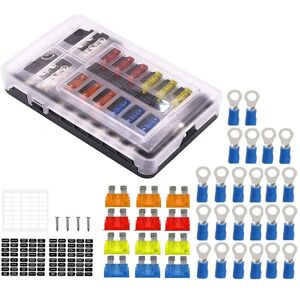 The fuse box is equipped with an LED warning light, which can quickly remind you of a short circuit or a blown circuit. Say goodbye to the trouble of finding faulty fuses. With 12 dedicated fuses and 12 floor slots, this fuse box helps keep your wiring and easily accessible, which makes your vehicle or boat electronics tidy and well-maintained. Made of environmentally friendly PBT material, it meets all the standards for a perfect marine fuse box. It has mechanical strength, insulation, heat resistance and flame retardancy Color: Black Material: PBT Package Contents: 1 * 12-Circ Fuse Block 6 * 5A Fuse Pieces 6 * 10A Fuse Pieces 6 * 15A Fuse Pieces 6 * 20A Fuse Pieces 2 * Label Stickers 1 * DIY Label Stickers 24 * Wiring Terminals 4 * Screws Only the above package content, other products are not included. Note: Light reflection and different displays may cause the color of the item in a little different from the real thing. The measurement allowed error is +/- 1-3 cm.
