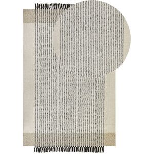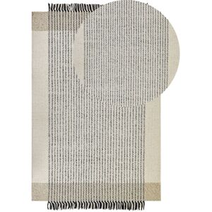 Wool Rug in Traditional Style. This rug will brighten up your interior and contribute to a cosy atmosphere. It features a chevron pattern and decorative tassels in classic colours that will embellish your room. The rug was handmade from wool entirely, which makes it exceptionally soft and comfortable in use. Give your feet a pleasant feeling and put it in front of your sofa or bed Details: Product Type: Low Pile Style: Boho General Color: White, Grey Material Type: Fabric Main Material: Wool Material Composition: 100% Wool Shape: Rectangular Anti-Slip Bottom: No GSM: 2800 g/m2 Pattern: Solid Suitable for Underfloor Heating: Yes Weaving: Handwoven Dimensions: Pile Height: 1 cm Width: 80 cm Length: 150 cm Weight: 3 kg Offer Includes: 1 x Rug Key Features: Perfect for Both a Bedroom and a Living Room, Classic Design, Unique Handmade Piece, High Quality, Exceptionally Easy Care Assembly Information: Does Not Require Assembly Additional Information: The product requires some time after