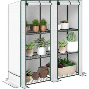 This Outsunny three-tier plastic greenhouse provides plenty of space for plants, flowers and more. The plastic cover protects plants inside from wind and rain, whilst allowing plenty of sunlight to pass through. Plus, the roll-up zipped doors allows easy access and provides fresh air inside whenever. OUTSUNNY 3 Tier Lean-to Mini Greenhouse with Plastic Cover, Clear