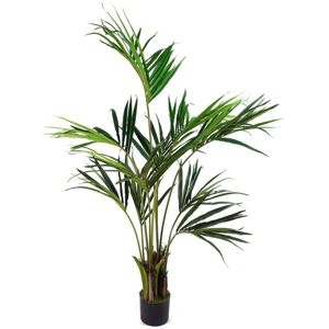 Artificial Kentia palm tree. This tree has silk leaves and natural additions at the base which make it look really realistic. As we have it arranged in our photos this measures 150cm x 110cm x 110cm � this is quite a wide large tree. The branches are wired and so the leaves can be shaped to fit your space if you need it to be narrower or wider. It comes potted in a weighted black plastic pot (measuring 18cm (d) x 14cm (h) approx.) These trees look most impressive if you put them inside a decorative planter and cover the top with gravel or soil. This product is designed for indoor use only.