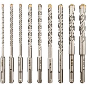 【9PCS DRILL BIT SETS】5mm+6mm+6mm+8mm+8mm+10mm+12mm+14mm+16mm*160mm; The drilling depth is 100mm. With this, you can drill all common dowel holes. (For your machine and personal safety, it is not recommended to use a three-claw impact drill) 【CARBIDE BITS】: The drill bit set is made of high-quality carbide steel, durable and rust-resistant. The tungsten carbide-tipped drill head is harder, stronger and more resistant to extreme loads; high-density drilling and fast waste removal 【X-HEAD】: It features an innovative X-shaped geometry with a unique cross-flute design for optimal disassembly and ease of use. Fully hardened drill bit with double flute spiral for efficient waste removal. 【2-HOLE SHANK】Round shank, 2-hole drill bit, regular drill bits in individual red case for concrete, granite, stone. It ensures optimum dust and debris removal via rounded spiral geometry, more efficiently. 【APPLICATION】: Suitable for drilling holes in concrete, ceramic tiles, stone, wood, aluminum, plastic,