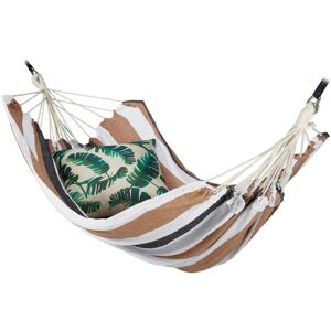 This hanging mat is the best accessory for the warmer months. Whether an interesting read by your favourite author in the garden or adventurous camping expedition with friends - The travel hammock is made of cotton and can be used anywhere. The outdoor swing bed can be stored compactly in the included sack, whether stowed away or to take on the next trip. Also a great addition in the home as extra seating or a guest bed. Adding a touch of decorative colour and a feeling of comfort. Please note: Please be aware that the hammock ropes have to be fastened to solid objects for use. Hammock Details - Total size H x W x D: app. 3 x 150 x 272 cm - Packed size H x W x D: app. 35 x 15 x 14 cm - Lying surface: W x D app. 150 x 200 cm - Weight: app. 1.3 kg - Max. capacity: app. 300 kg - Material: cotton, polyester - Various colours available Hammock Bed For In- & Outdoor Use - Large surface up to a total load of 300 kg - With each 2 ropes and hooks to fasten - Use sack for storage and travel
