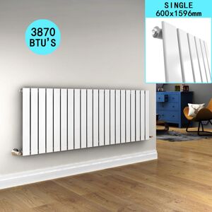 600x1596mm Double Horizontal Designer Radiator This astonishing White 600x1596mm horizontal flat panel radiator can become a reflection of your home's interior design,stylish and efficient that will inspire as much as they warm. Also it has a super heat output,which gives maximum efficiency when it comes to keeping your house warm,even in the coldest months. Product Features: Designer radiator with double panel White powder coated finish High heat output Fixing includes: wall brackets,plug and vent Please note: This item does not include radiator valves Size may vary due to manufacturing process by +/-20mm if the stated size Dimensions: Height: 600mm Width: 1596mm Accreditations & Testing: Material: Low carbon steel Manufactured in accordance with BS EN 442 Registered: Complies with ISO9001:2008 Pressure tested to 10 bar / maximum working pressure 7 bar Suitable for all UK central heating systems