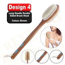 High-quality material of the handle Long-handled double-sided massage shower brushes, soft and hard, the handle is made of non-slip silicone, and the long handle is made of high-quality lotus wood to meet the human aesthetic of the handle. Soft and hard natural boar bristles can add color to your bath, exfoliate and massage Upgrade arc-shaped long-handled back scrubber 44cm longer length and upgrade arc conforms to ergonomic mechanics, is easier to use, easier to clean the back skin or hard-to-reach legs for everyone. Especially a good helper for those who have difficulty lifting their shoulders. The arc-shaped handle provides a more comfortable grip than a vertical shower brush Back Brush for Dry and WetWhen dry brushing, you can use the stiff side to massage the skin, stimulate blood circulation, improve skin quality and relieve stress. When wet brushing, you can combine shower gels or scrub, it will go deep into the pores to remove dirt and balance oil, to provide a good bathing