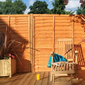 The Rowlinson Traditional Lap Panel is a double framed wooden overlap fence panel. Each panel is made from double waney edge slats on a standard framing, all dipped in a brown colour treatment, which helps protect each panel from wood rot and fungal decay. This wooden fencing panel is a traditional 6ft (1.83m) in width, complete with a slim capping strip to the top.