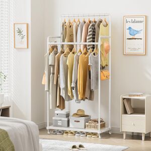 Double Rails Design: Size of clothes rail:155 cm(H)x72.5cm(L)X 39 cm(W) , the combination of high and low rails of the clothes rack can accommodate a large number of clothes of different lengths. The Short rods on both sides can hang clothes and increase the overall storage capacity. The non-slip hanging beads on the clothes rail prevent clothes from falling. It‘s an excellent choice for bedrooms, living rooms, laundry, and balconies Rebrilliant Colour: White