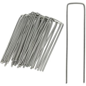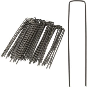 If you’ve got some weed barrier fabric to be secured to the ground, this set of 50 gardening staples is just what you need. You can however use them for more than this mere task, as they are extremely versatile. The steel pegs are also great for the fixation of hoses or nets. When assembling a tent out on a camping trip, you can also use them as securing pegs. The pointed ends ensure that they enter the ground effortlessly even in harder conditions. The galvanised steel can withstand weather conditions just fine. Gardening Staples Set of 50 Details • Length: app. 15 cm • Width: app. 3.5 cm • Diameter per piece: app. 0.3 mm • Material: Galvanised steel • Weight per peg: app. 20 g Universal Lawn Pegs • Secure weed barrier fabric • Fix cables, hoses or nets in place • Bevelled tips facilitate ground penetration • Stainless metal pegs • Firm in the ground Included in Delivery • Securing Pegs Set of 50 • Decorative items shown in product photos are not included
