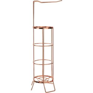 An essential for every contemporary bathroom, the standing toilet roll holder by Premier Housewares is a modern twist on common free standing toilet roll holders. This toilet roll stand is made from strong iron wire, its sleek rose gold chrome finish complementing other reflective bathroom fittings and accessories. The horizontal arm keeps toilet roll close to hand, while upto three extra rolls can be stored below the arm, how great is that! Its wide round shape and three slanted legs on the base keeps the stand stable and secure. Forget the hassle of installation with this toilet roll holder as it requires no installation at all. No drilling, no holes or damage in the walls, and no mess created. This toilet roll holder is also a space saver as you don't need to find any other space for your spare toilet rolls. The thick base will keep your toilet rolls dry from any wetness on the floor. Features of the product include: -Stainless, sturdy rose gold iron wire -Easy toilet roll storage