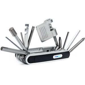With a compact size and weight of just 180 g, this tool kit will fit in every pocket. 14 work tools are combined in this Multi-Tool so it's not only perfect for repairs at home, but also an essential tool to bring on trips and when you're out-and-about. In addition to the fold-out tools, the plastic housing can also be removed and used as a tire lever so not even a flat tire can ruin your bike trip. Bike Repair Set Details • Size: approx 2.5 x 9 x 4.5 cm (1 x 3.5 x 1.8 in) • Weight: approx 180 g (0.4 lbs) • Allen wrench: 2, 2.5, 3, 4, 5, 6 and 8 mm • Phillips screwdriver and flat head screwdriver • Chain rivet and chain tool • Spoke key • Torx key T25 • 2 tyre levers Multi-tool for bike repairs on the road • Small bike tool set for use at home and on the road • Easily fits in pockets • For maintenance and mishaps while travelling Included in Delivery • 1 bicycle multi-tool