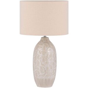Ceramic Base Table Lamp. This tall bedside lamp consists of a stable ceramic base and a fabric drum shade in a similar colour. The handmade base decorates the interior, providing a dash of a classic, quite romantic design. It matches traditional interiors and adds a stylish accent to more contemporary areas as well. The lamp gives an ambient light needed in the bedroom or in the corner of the living room. Details: Product Type: Table Lamps Style: Retro General Color: Beige Material Type: Ceramic Main Material: Ceramic Additional Material: Fabric Base Material: Ceramic Shade Material: Fabric Material Composition: 65% Polyester Wattage: Max. 40 W IP Protection Code: IP 20 Light Bulbs Required: 1 Voltage rating: 230 V (50/60 Hz) Dimensions: Base Dimensions: 16x16 Cord Length: 148 cm Depth: 32 cm Width: 32 cm Height: 57 cm Weight: 3 kg Offer Includes: 1 x Table Lamp, Not Included: Light Bulb Key Features: Calming Diffused Light, Works Splendidly as an Ambient Light, Adds a Homely Touch to