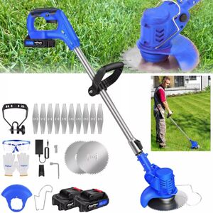 Product Description: 【Upgraded Strimmer】The new strimmer cordless with wheel that are easier and less labor-intensive than traditional lawn mowers. Equipped with a large-capacity battery, the working time of the traditional lawn mower is increased by 20%. And delivers a sharper, stronger and more efficient cut, while the 90° adjustable trimmer head and telescoping handle easily tackle hard-to-reach areas 【High Power Lithium-ion Battery & Remaining Power Display】Cordless grass trimmer with 1.5Ah high-capacity 21V lithium-ion battery, two batteries up to 40-60 minutes of runtime(Depending on the speed used by the machine, it faster and consumes more power). 【Lightweight and Safe Design】The grass cutter weighs only 2.6KG (like a laptop), lightweight and easy to use. While the angle of the grass trimmer can be adjusted, we have added a double switch design, when two buttons are pressed at the same time, the electric weed eater will be activated. The design of the safety switch prevents