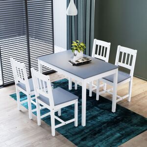ELEGANT Wooden Dining Table and 4 Chairs Set Solid Dining Kitchen Furniture This dining table and chair adopts a simple streamlined design, with a strong sense of modern scene design, and is made of high-quality solid pine wood as raw material, which is more stable, ergonomic and comfortable backrest chair design, durable, combined with a simple and fashionable style, adding a touch of nature and elegance to your home. These tableware sets are not only suitable for kitchens, living rooms, dining rooms, office lounges, restaurants and kitchens, but also can flexibly adapt to different scene requirements, whether it is a family dinner, a gathering of friends, or a balcony leisure, it can be easily satisfied, making your life more refined and convenient. Features ⭐【 High-Quality Materials and Craftsmanship 】 - Made of solid pine wood, it is simple, practical, hard and has a long service life, adding a sense of nature and quality to your home. ⭐【 Paint Coating 】 - The top surface is