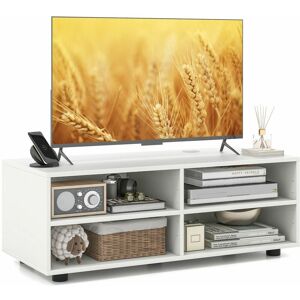 Display your TV in style with this modern TV stand. The TV cabinet is made of engineered board and MDF with smooth finish, which permits a long-term service life. This TV console table features 3 adjustable shelves (each with 5 adjustable positions) that stores anything from your electronics to your home goods. In addition, the cable management hole and cable hole cover grommet are designed to organize and hide messy cables. With 6 adjustable foot pads, youll never have to worry about it wobbling or shaking. This entertainment center mixes a modern clean style, which will be a classic piece to your living room. Costway Wooden TV Cabinet Table TV Stand for TVs up to 55 Inches in Grey