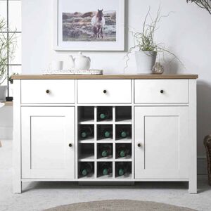 Add both style and function to your home with the Bampton 3 Drawer Sideboard with Central Wine Rack. This versatile piece offers ample storage with three roomy drawers and cupboards, making it perfect for organizing kitchenware, dining accessories, or household essentials. The central wine rack adds a touch of elegance and practicality, providing a dedicated space to showcase and store your favourite wines. The spacious top surface is ideal for displaying a coffee machine in the kitchen or your cherished ornaments and family photos in the dining room. Finished with the classic Bampton styling, this sideboard blends effortlessly into a range of decor schemes, making it a practical yet attractive addition to any home 17 Stories