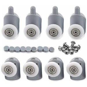 8 Piece Shower Door Rollers Single Wheels, includes 4 top rollers and 4 bottom rollers. Good for replacement shower door rollers. The diameter of the wheel is 23mm, the width of the wheel is 6mm. The minimum glass mounting hole is 11mm, the maximum glass thickness is 6mm. The distance from the center of the mounting hole to the edge of the glass is 18mm. The shower door roller is made of brass rod and ABS plastic material, it is rust resistant, sturdy and durable. Supplied with screws and plastic cover. These single shower door rollers fit glass shower doors.The sliding door rollers kit makes the door sliding and save effort. A handy hardware for the sliding glass shower door. The bath path is easy to move and install. It can also move the door to save your space.