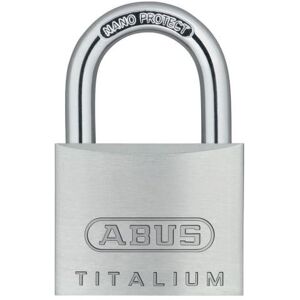 This ABUS 64TI/40 TITALIUM™ Padlock has the following specification: ABUS Security Level: 5. Keyed Alike Key Reference: KA6412. Shackle Width: 22mm. Shackle Height: 23mm. Shackle Diameter: 6mm. Overall Width: 40mm. Overall Height: 62mm. Overall Depth: 15mm. The ABUS 64TI Series TITALIUM™ Padlocks are ideal for medium to high risk of theft, recommended for a wide range of security requirements. All models in this series have a paracentric keyway and chrome plated cylinder cores. Hardened steel shackle, 30mm and above, with NANO PROTECT™ shackle coating which assures security and high corrosion resistance. TITALIUM™ is based on a special aluminium alloy, a mixture of materials is created which is extremely durable and lightweight; similar to the process used in aircraft construction. Compared to classic brass padlocks, the locks in the TITALIUM™ series are around 30% lighter but feature the same level of security making them excellent value for money. Sizes: 20 to 25mm, ideal for