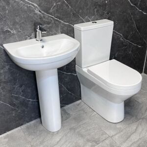 Toilet and Basin Bathroom Set Closed Back Comfort Height Round Style Carrie Set includes: Carrie Comfort Height Closed Back Close Coupled Toilet with Soft Close Seat Comfort height toilet Closed back Made from high quality vitreous ceramic D-shaped toilet pan Close coupled WC pan and cistern Including soft close toilet seat Quick release seat mechanism for easy cleaning Sizes approx: Width: 380mm Depth: 650mm Height: 900mm Pan height only: 480mm Charlotte Basin and Pedestal - 1 Tap Hole 1 tap hole basin Full pedestal Modern design High gloss glaze Sizes approx: Width: 540mm Depth: 420mm Height: 840mm Hannah Basin Mono Mixer Tap & Waste Can be Added at Extra Cost Contemporary design Single lever controls both temperature and flow Manufactured using brass Chrome finish High quality Includes click clack basin waste Flexible Toilet Pan Connector Soil Pipe Can be Added at Extra Cost Suitable for most toilets Sizes approx: Length (at shortest): 270mm Length (at longest): 490mm Diameter: